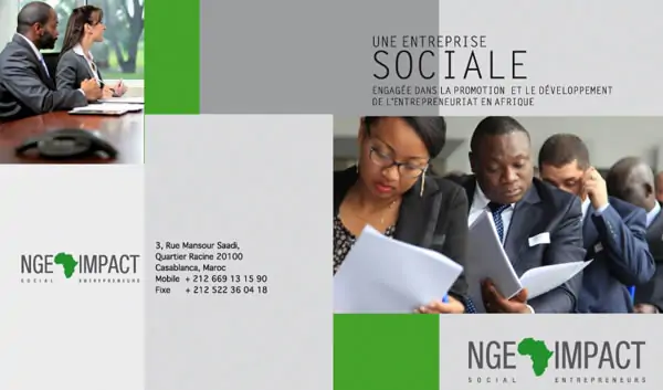 Dépliant institutionnel réalisé pour NGE-Impact pour le distribuer à son stand lors de la cinquième édition de Hub Africa qui s’est tenu le 4 et 5 mai 2017.
